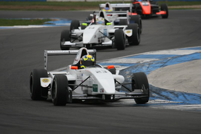 Pushing hard, Hernan Fallas discovered the limits of his tyres’ adhesion and beached his car in a gravel trap. Prior to this, the young Argentinian had been running inside the top ten with improving sectors in each consecutive lap. His ‘moment’ saw him qualify in 16th place overall for the first race. His team-mate, Michael O’Brien struggled to find the perfect balance for his car and could only post the 18th-fastest time.